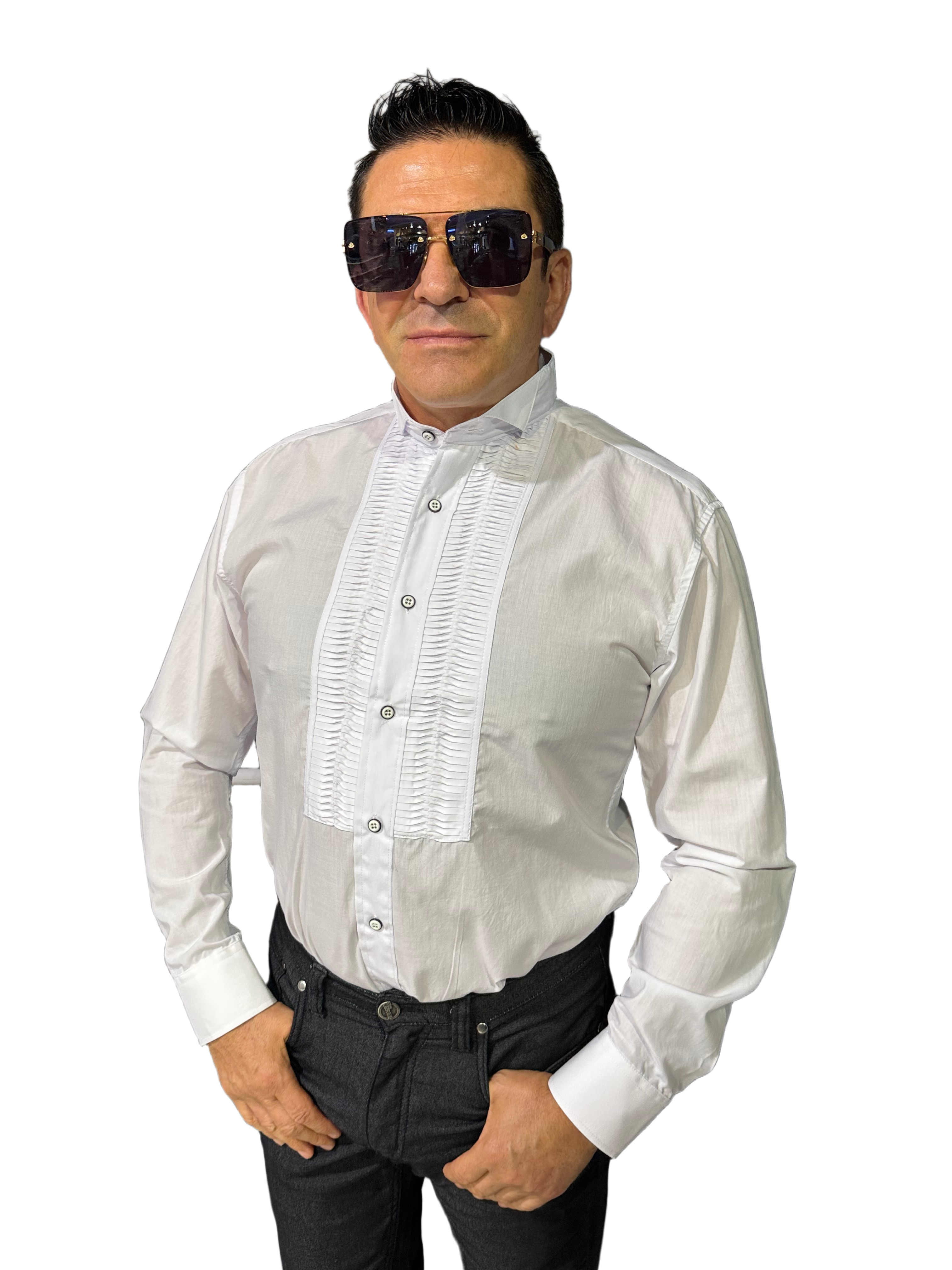 Miesten Valkoinen pitkähihainen napitettava frakkipaita..