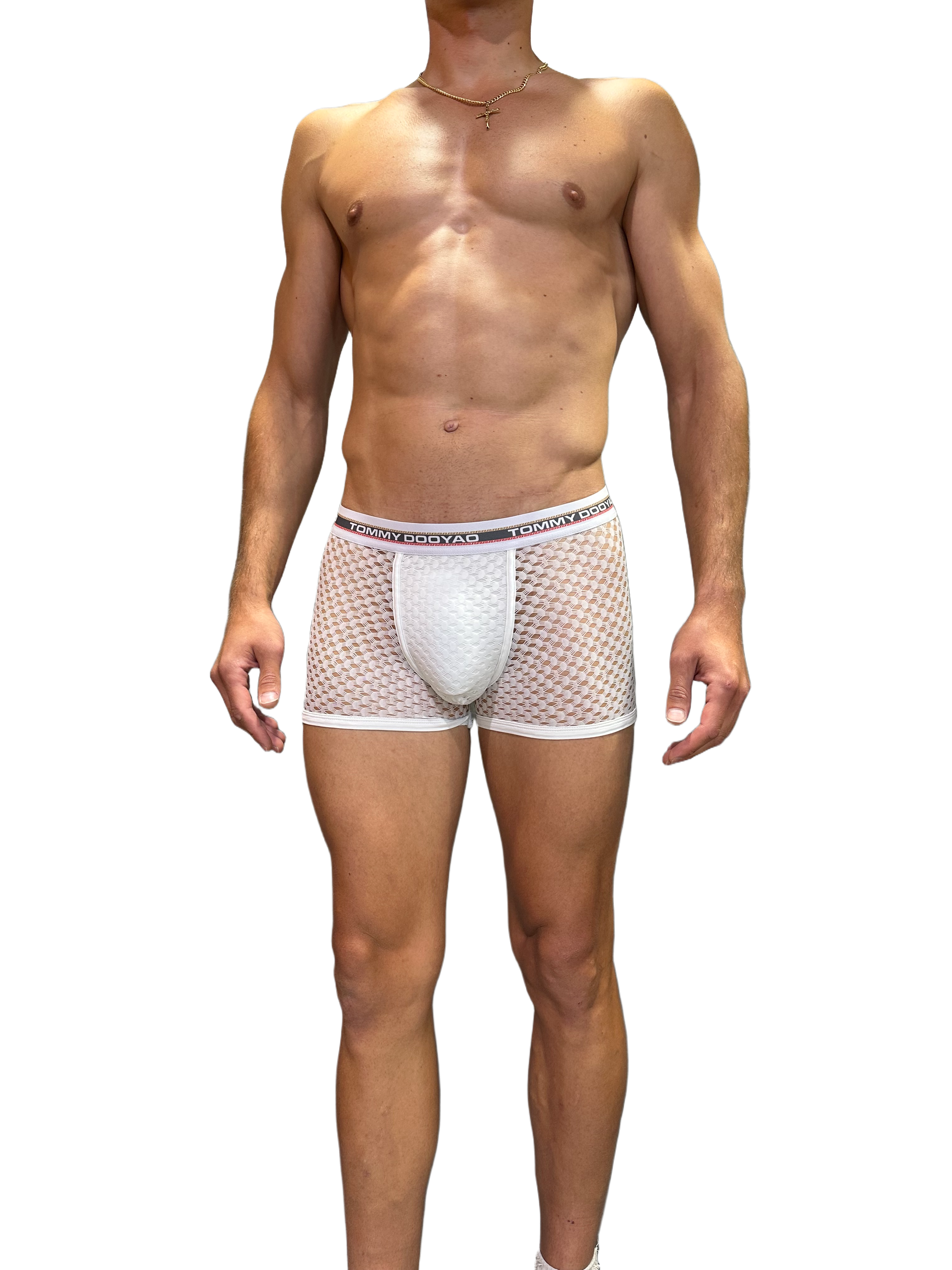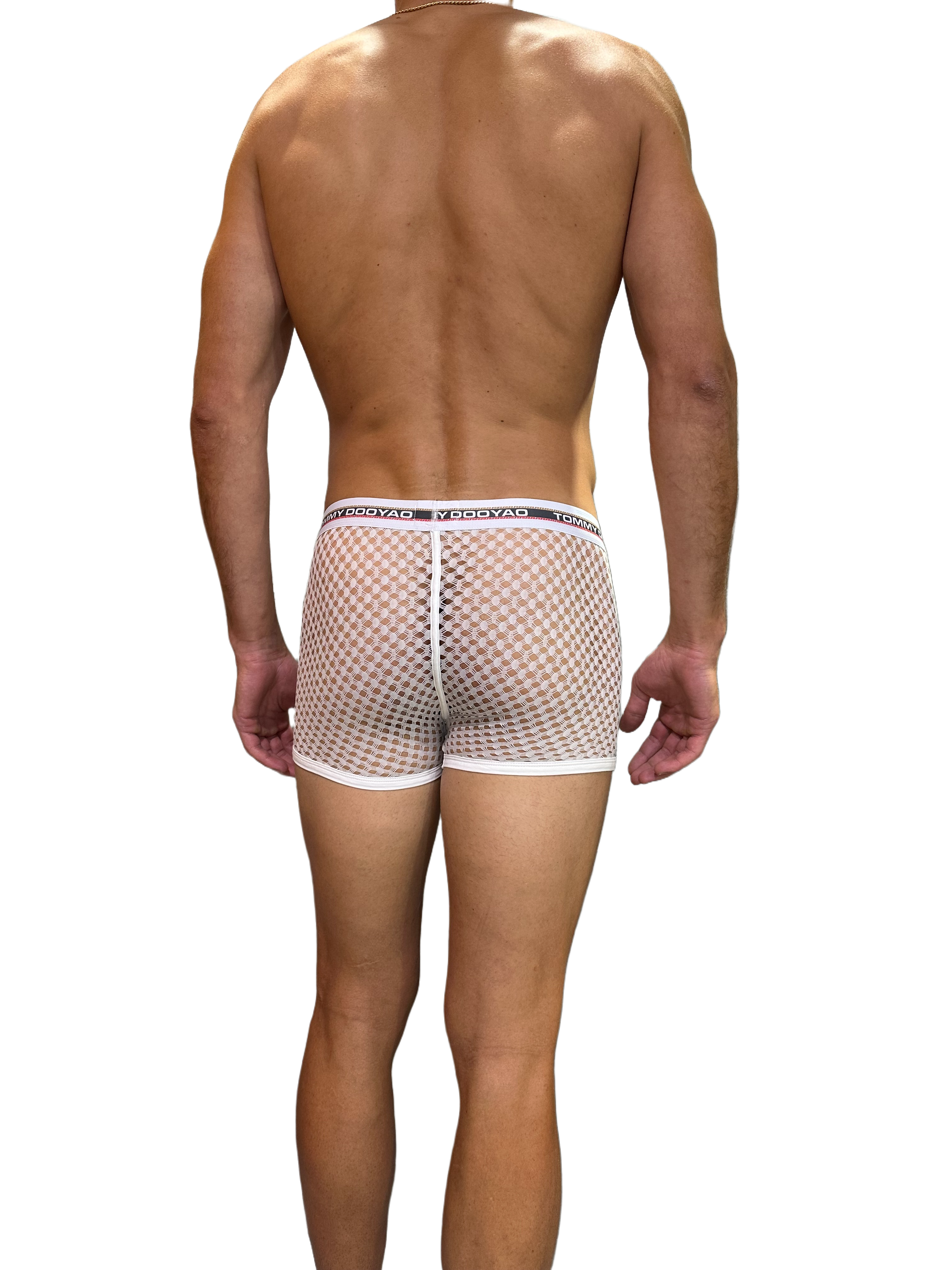Miesten Muodikkaat valkoiset verkkobokserit.