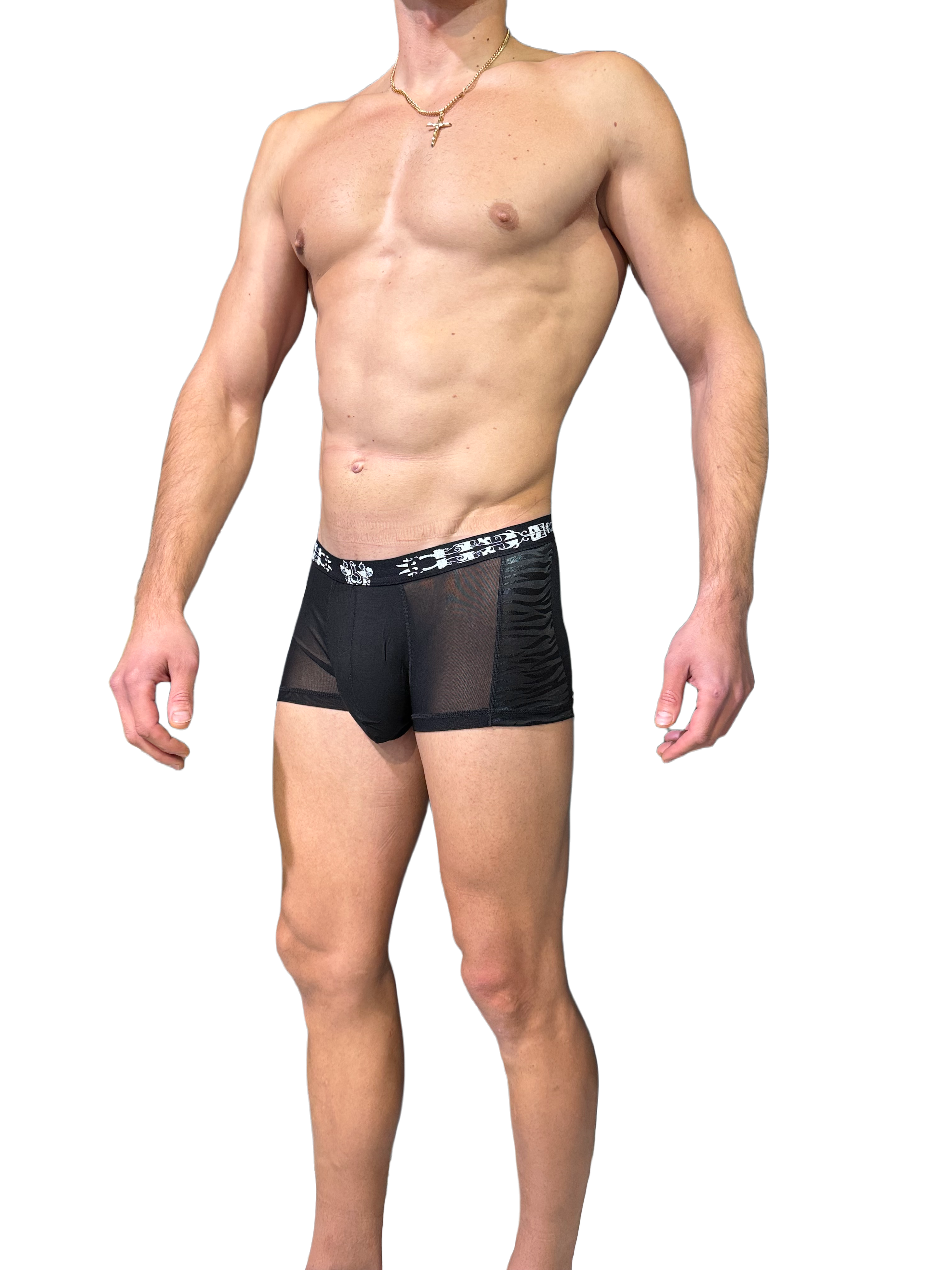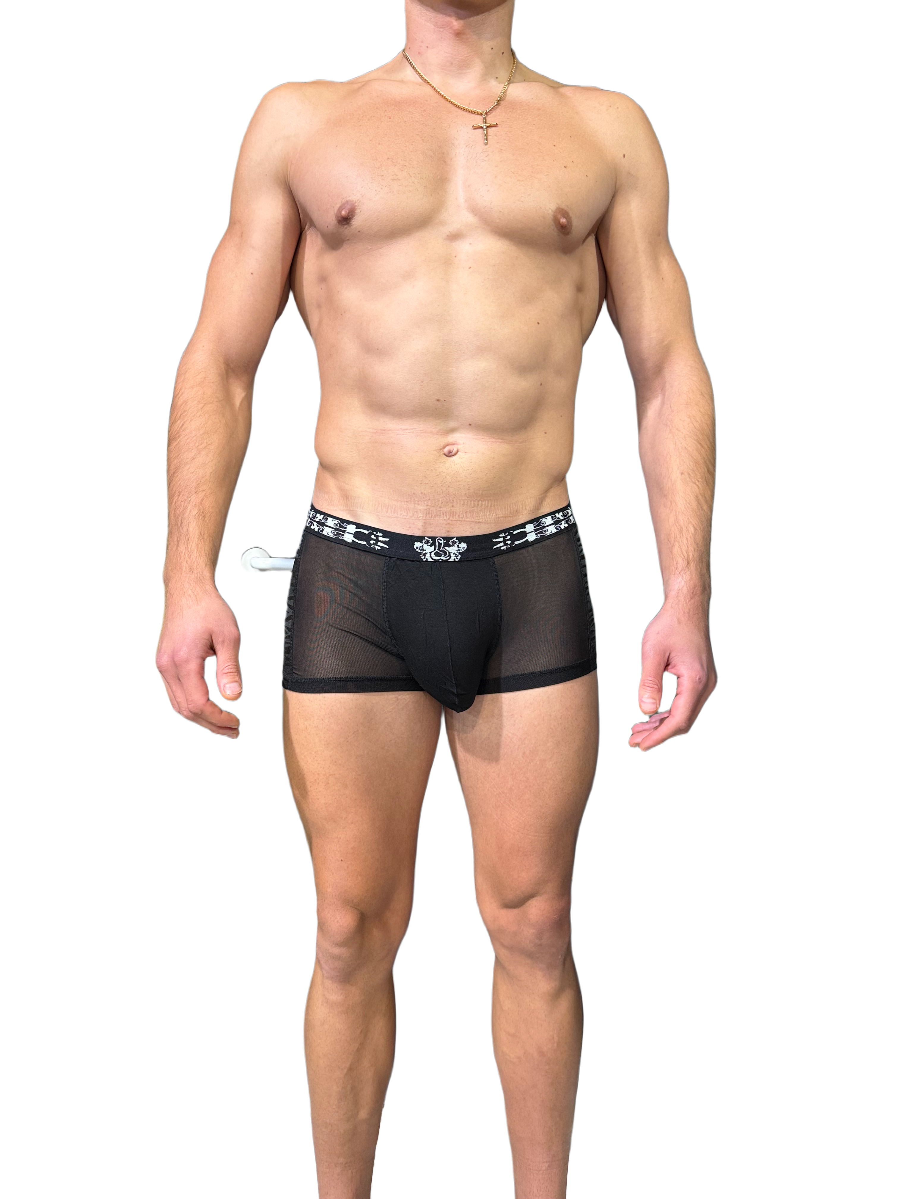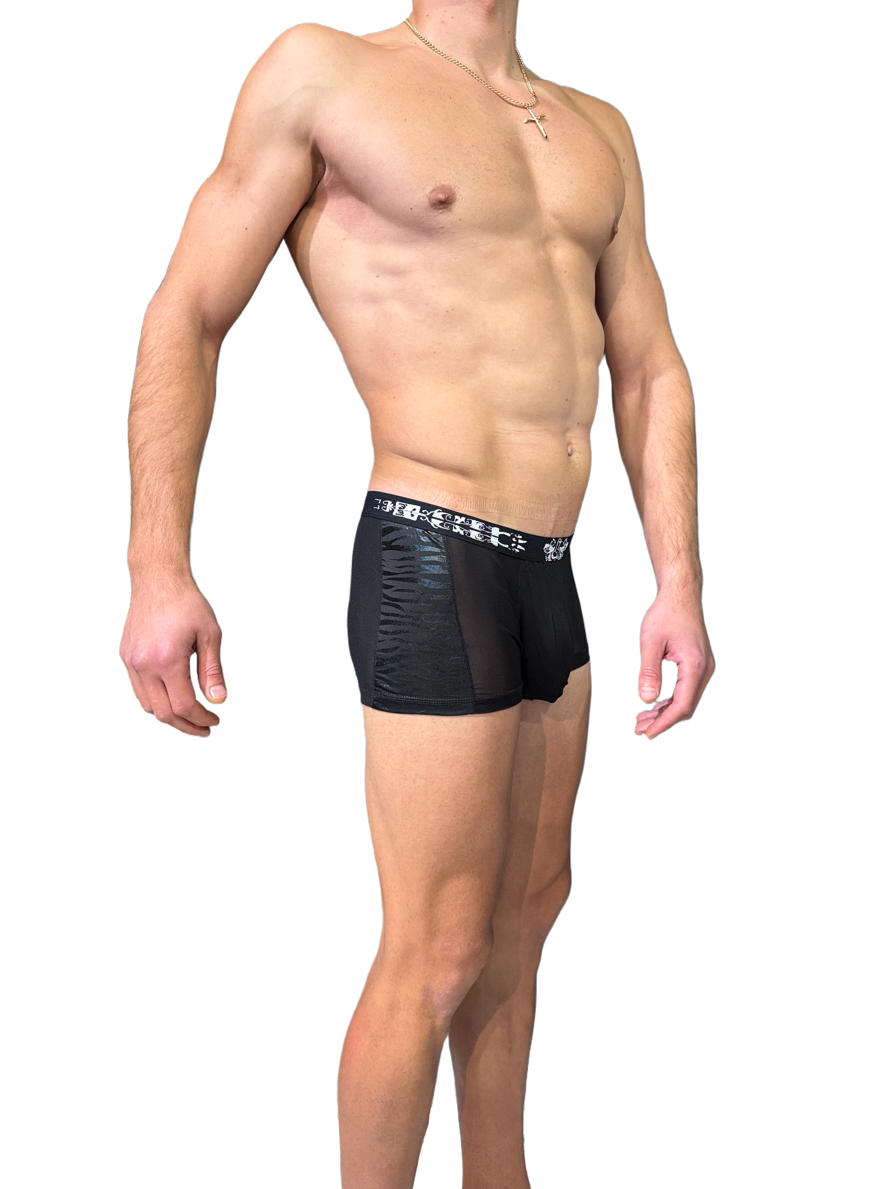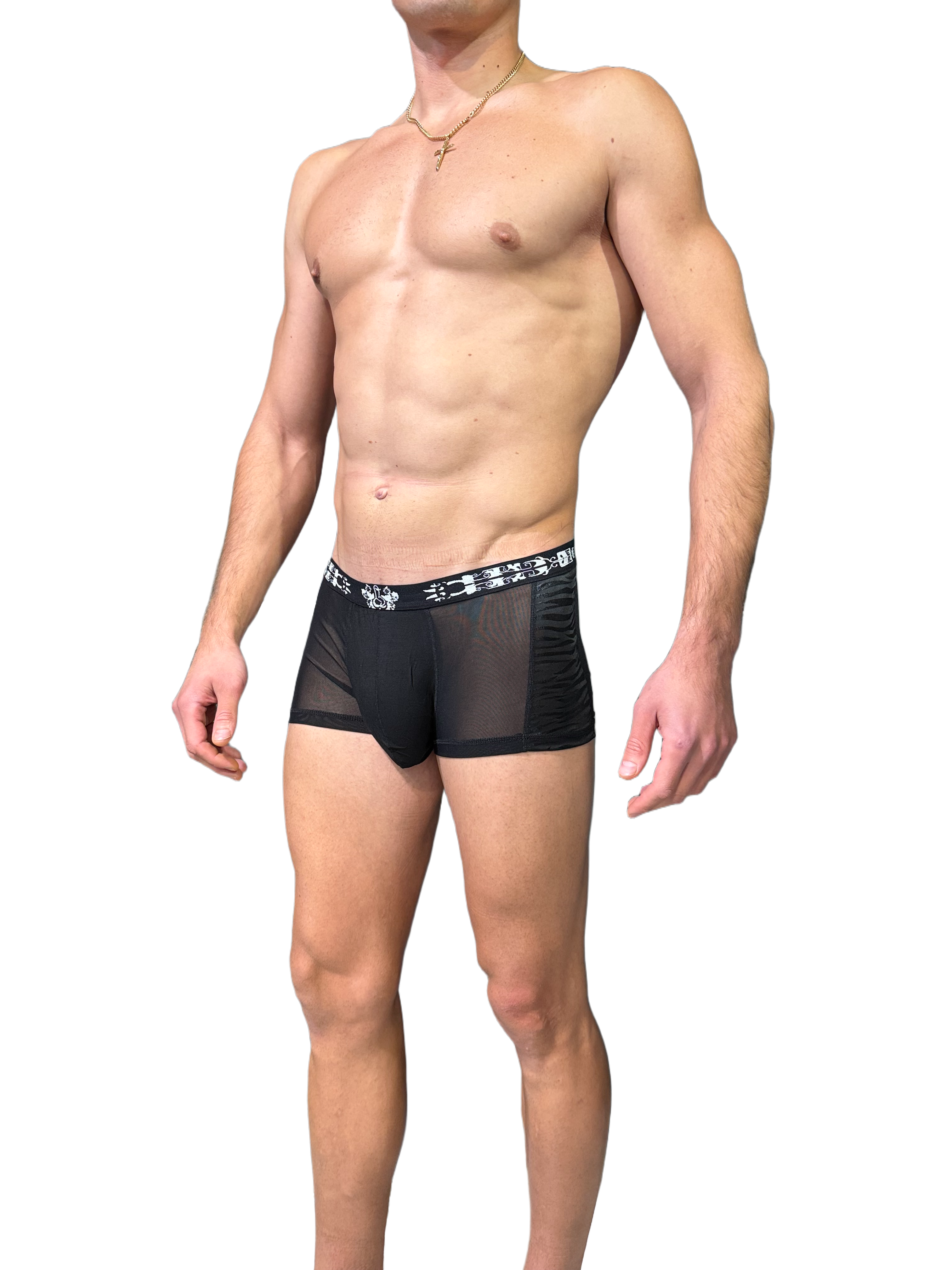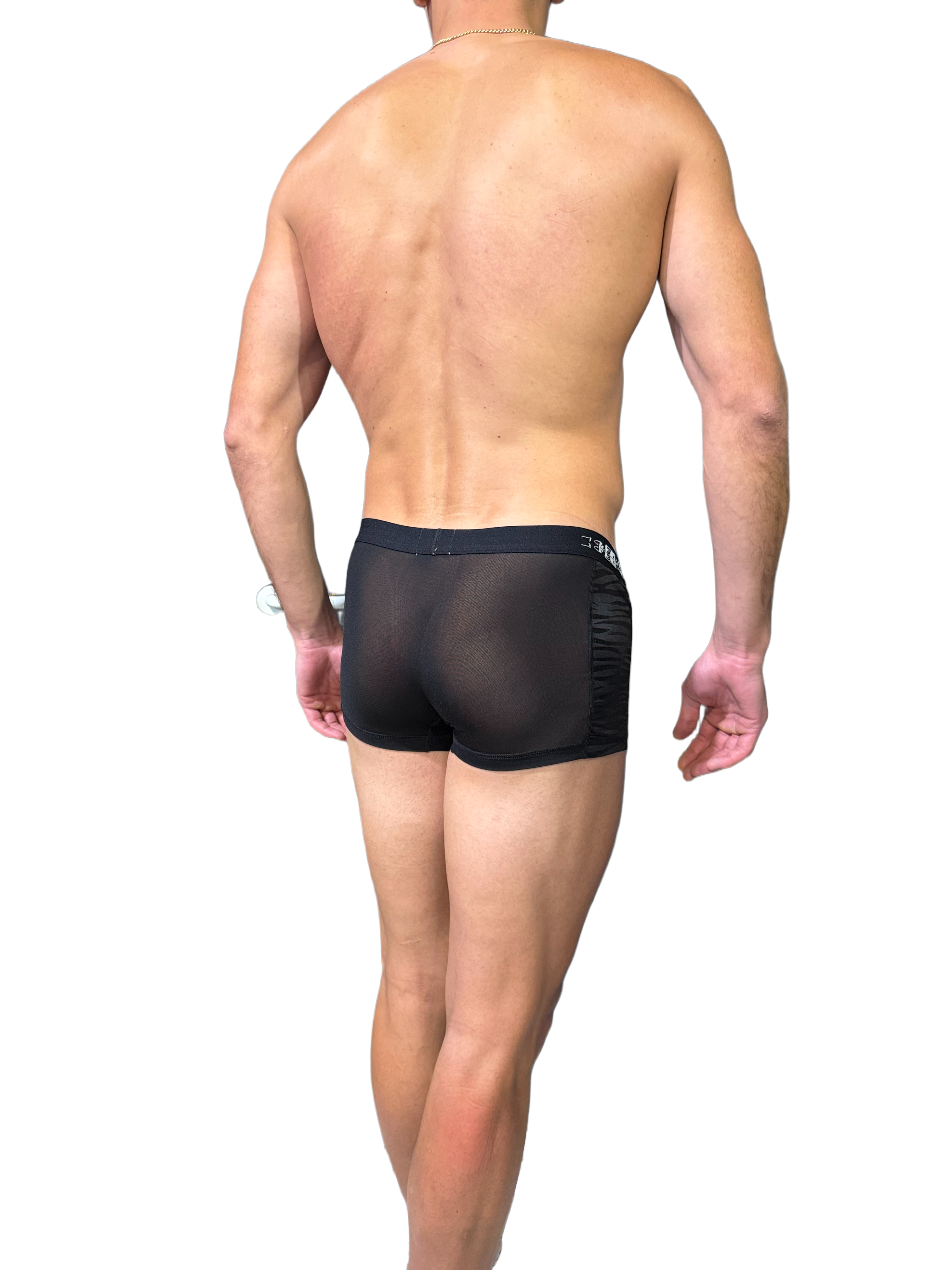 Miesten seksikkäät mustat läpinäkyvät bokserit .