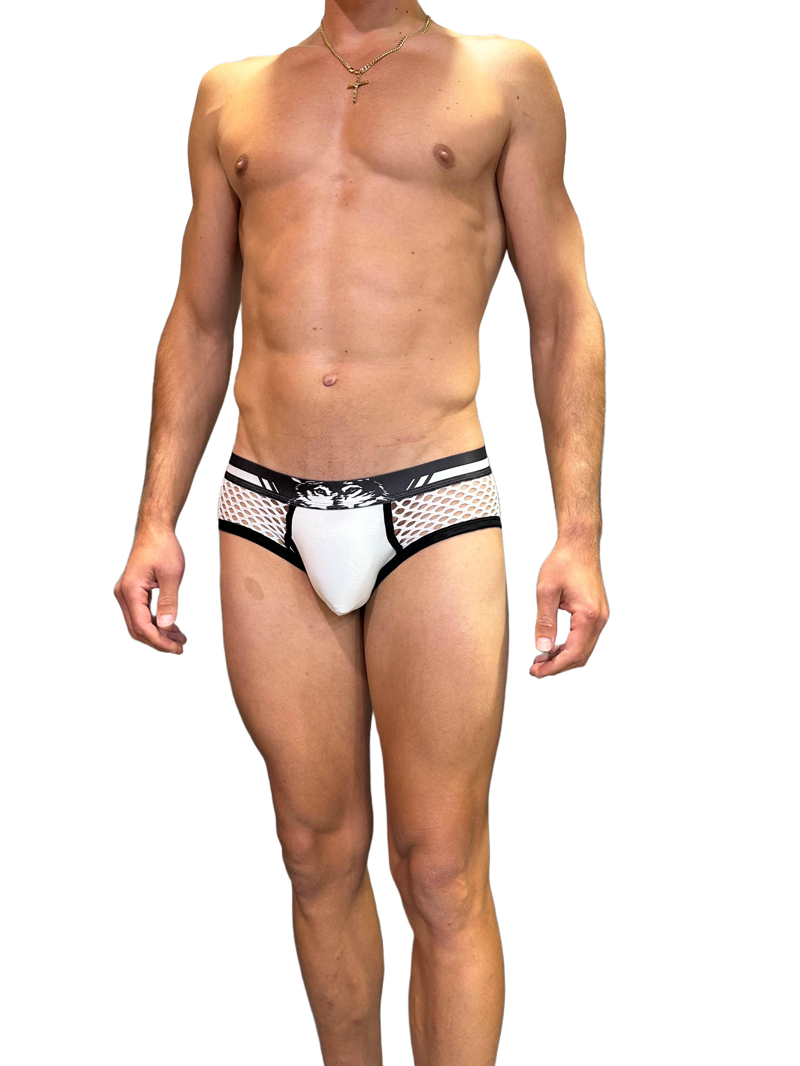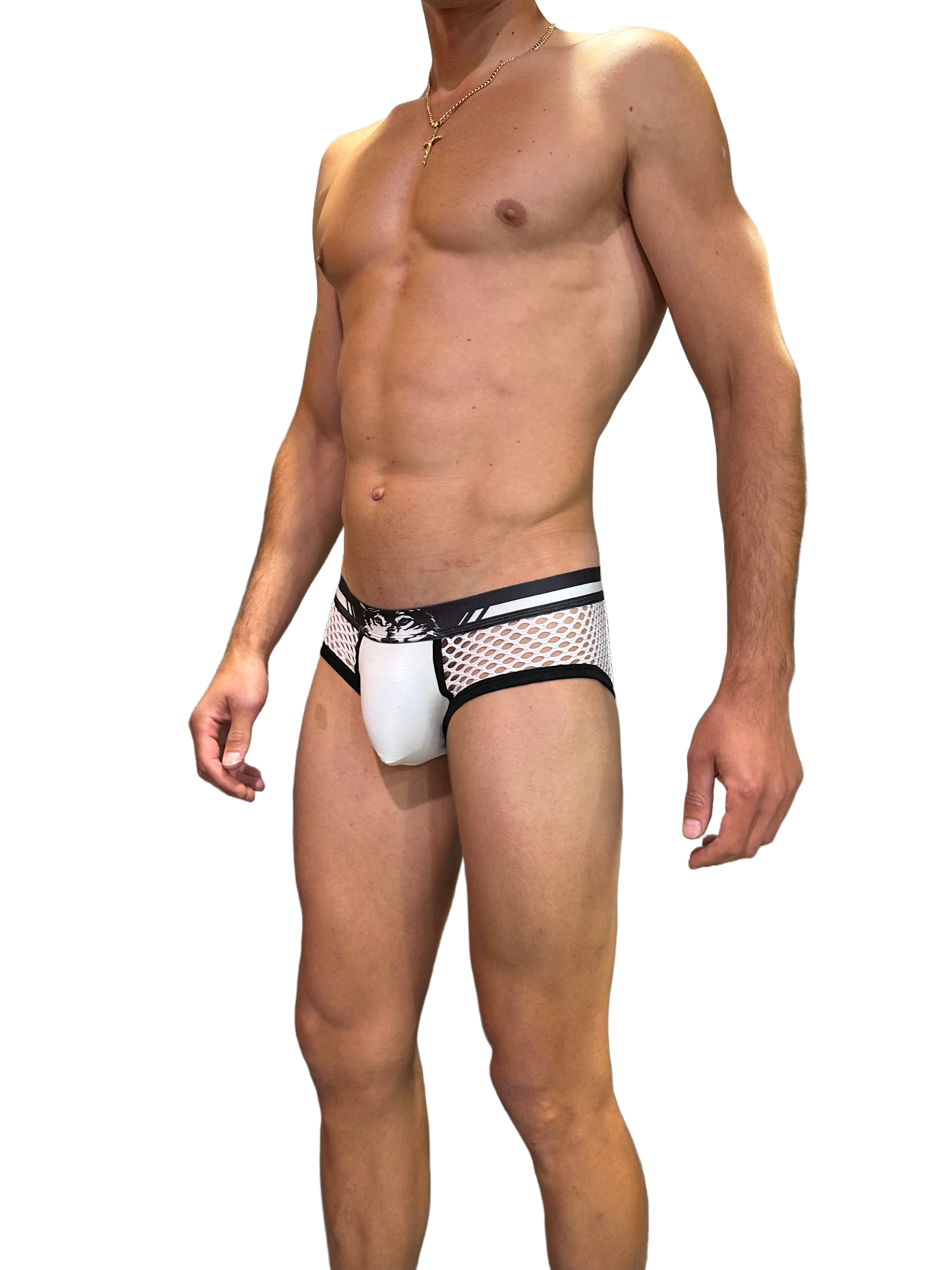Miesten valkoiset verkko Briefs alusvaatteet.