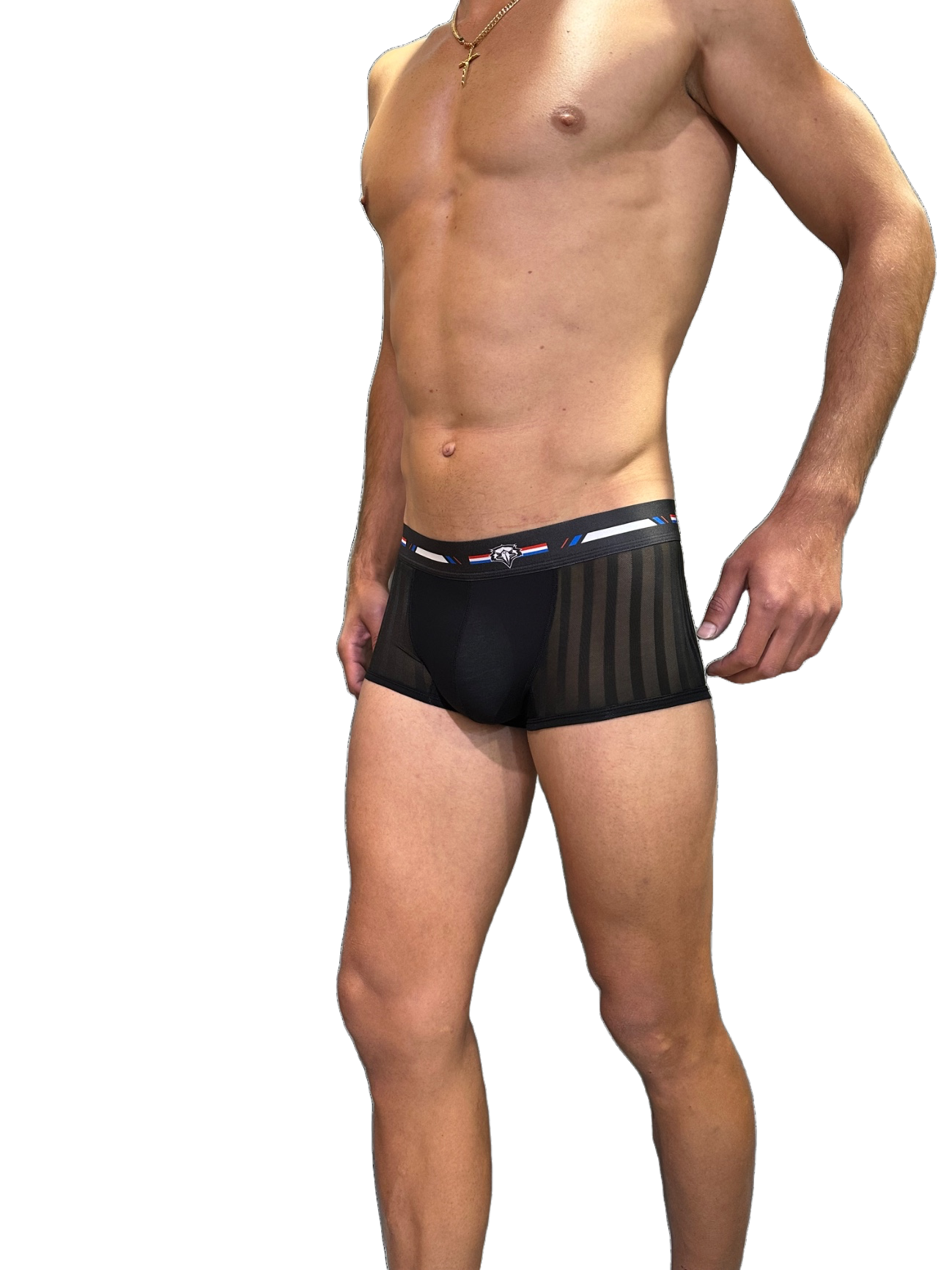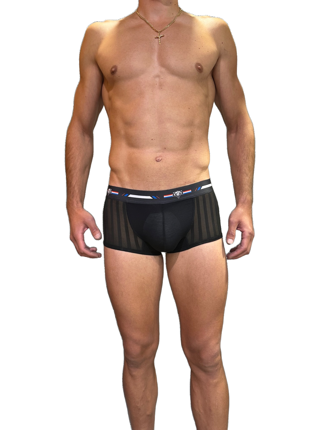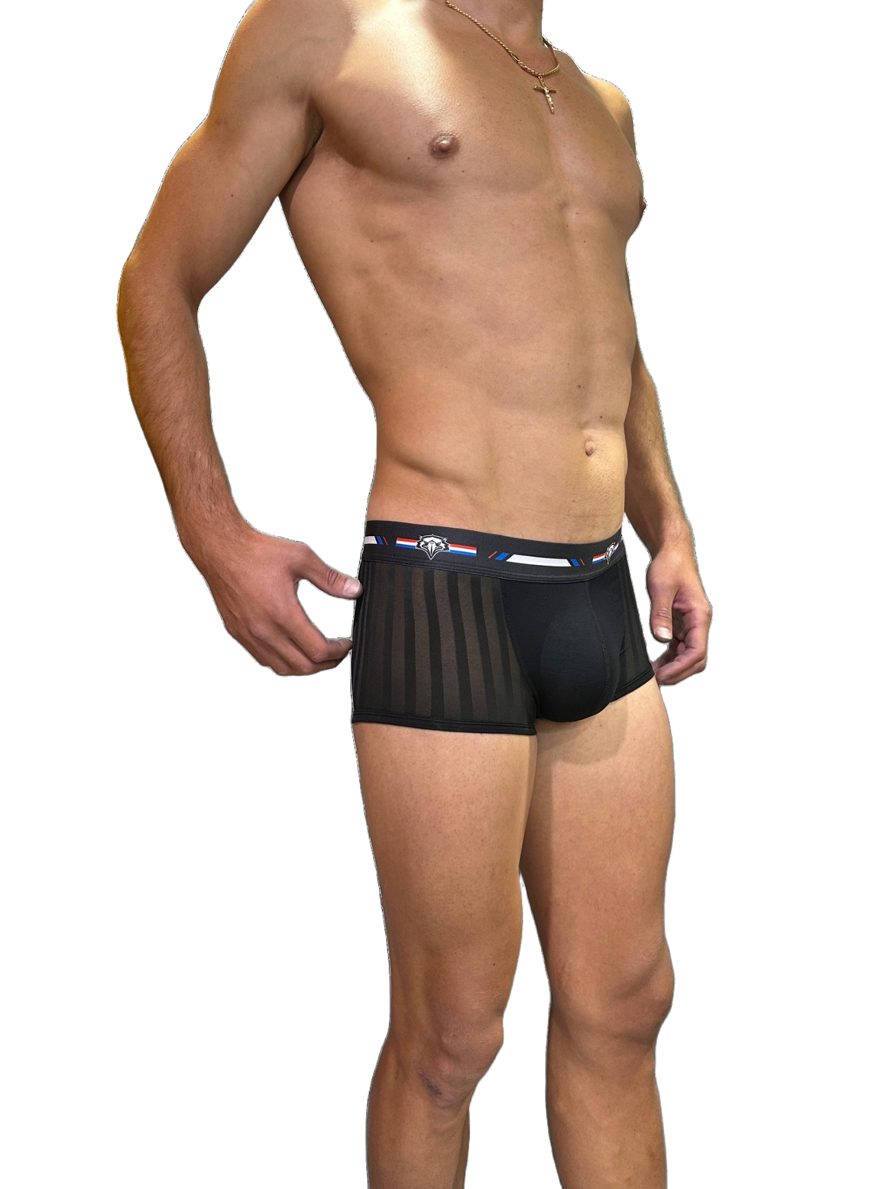 Miesten seksikkäät mustat läpinäkyvät bokserit .