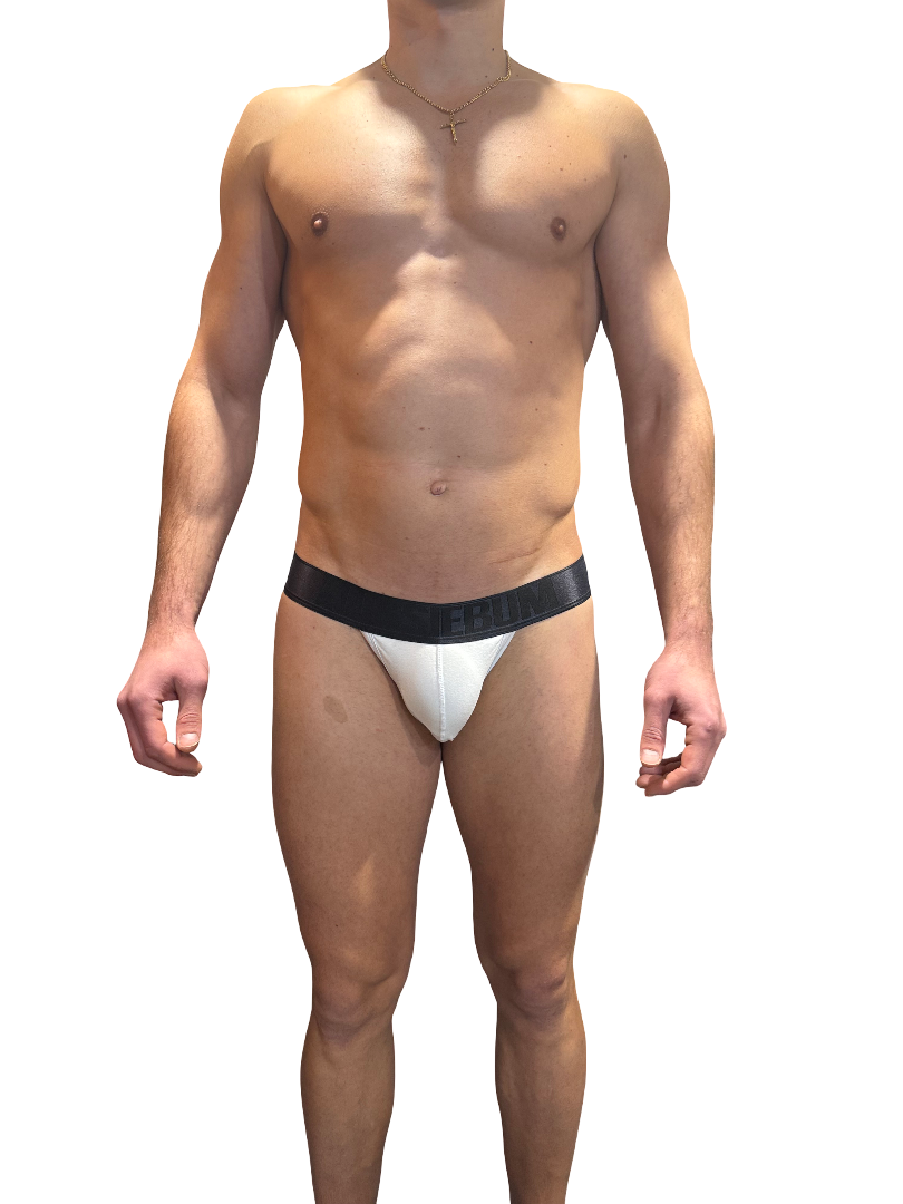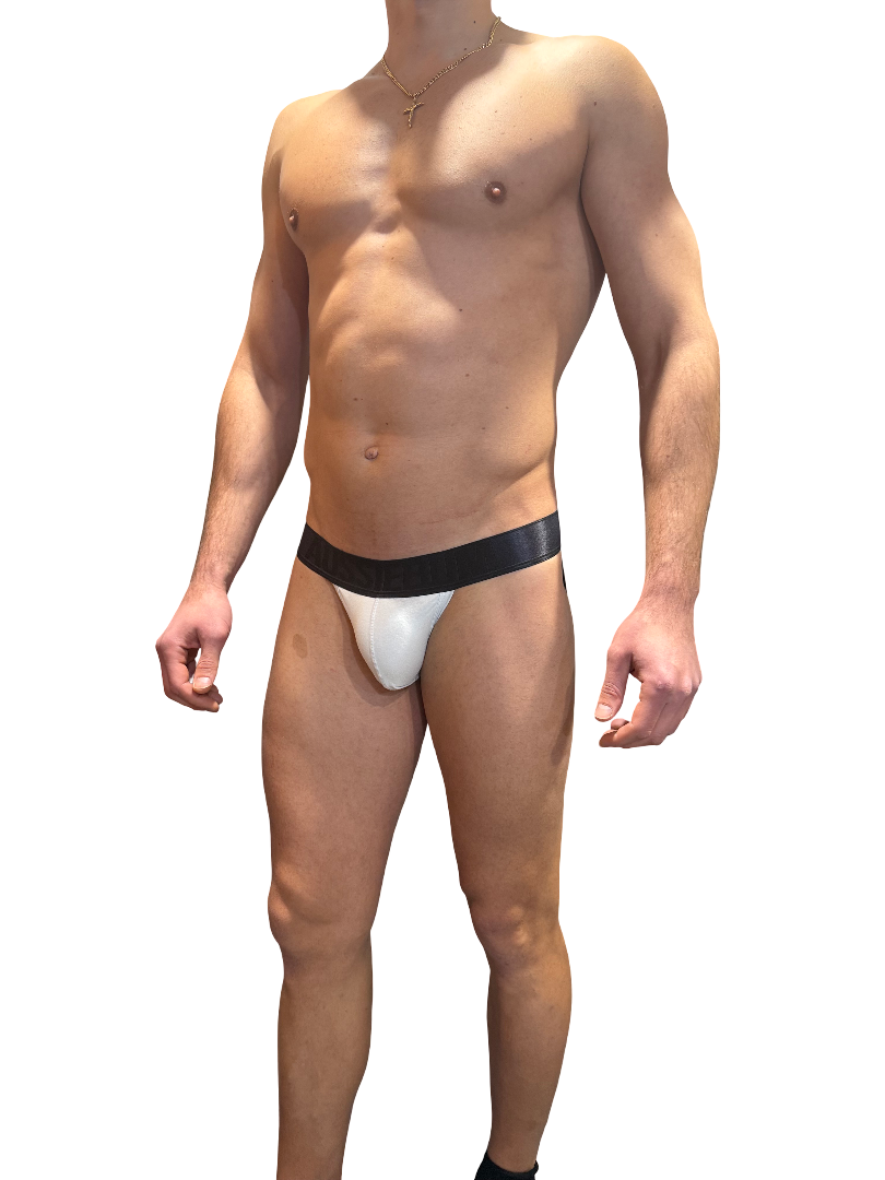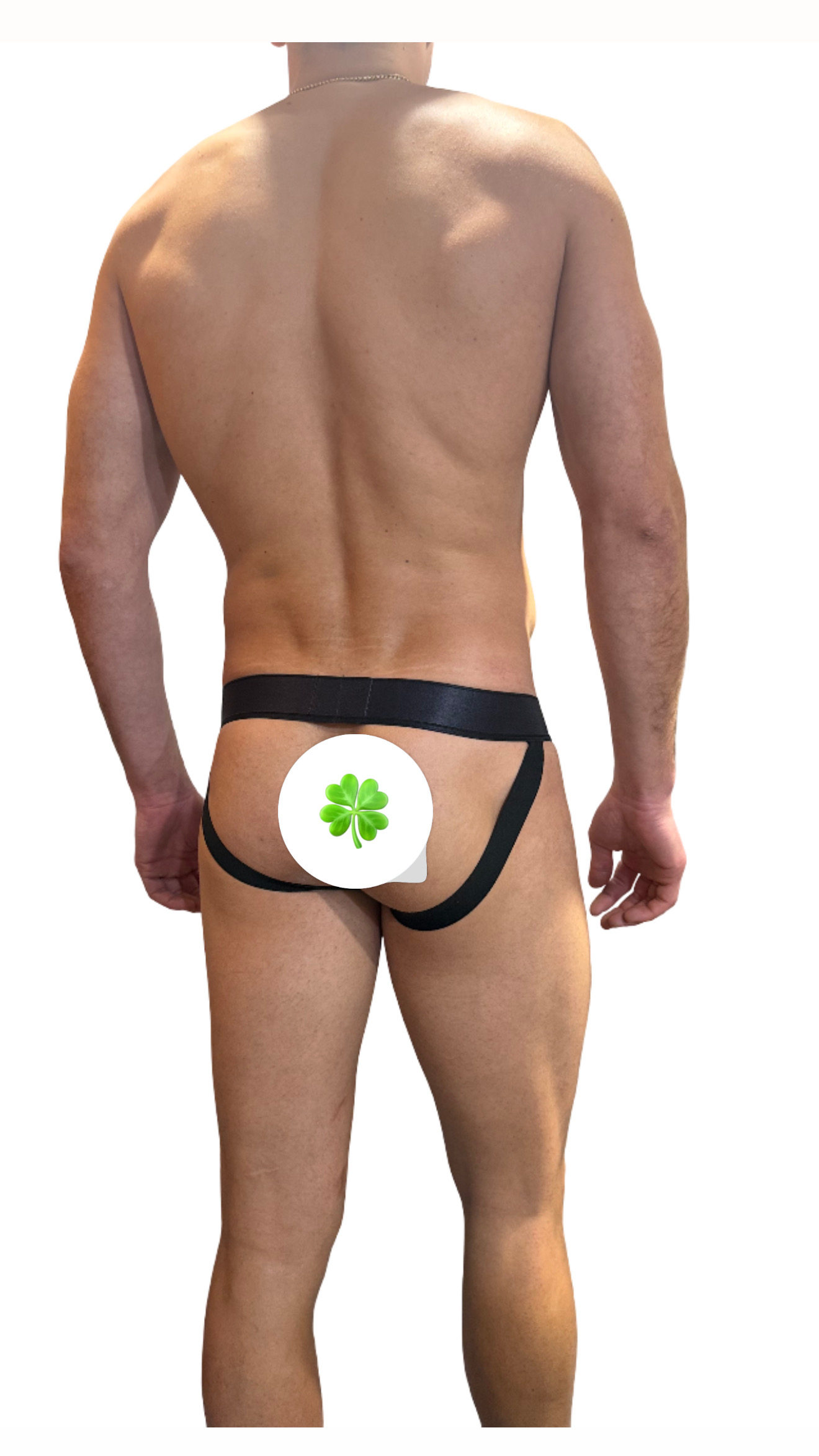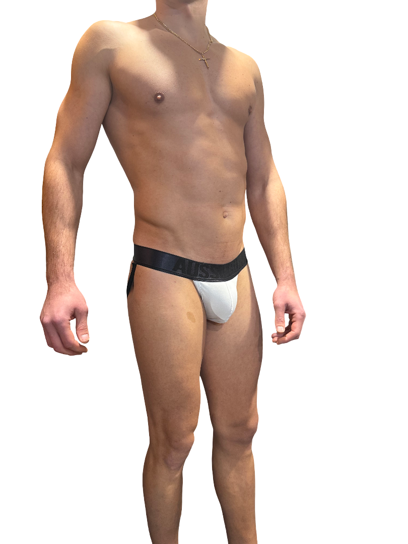 Miesten seksikkäät mustat AUSSIBUM- jockstrap teksti resorilla.