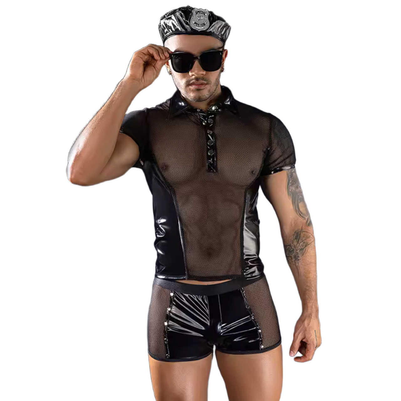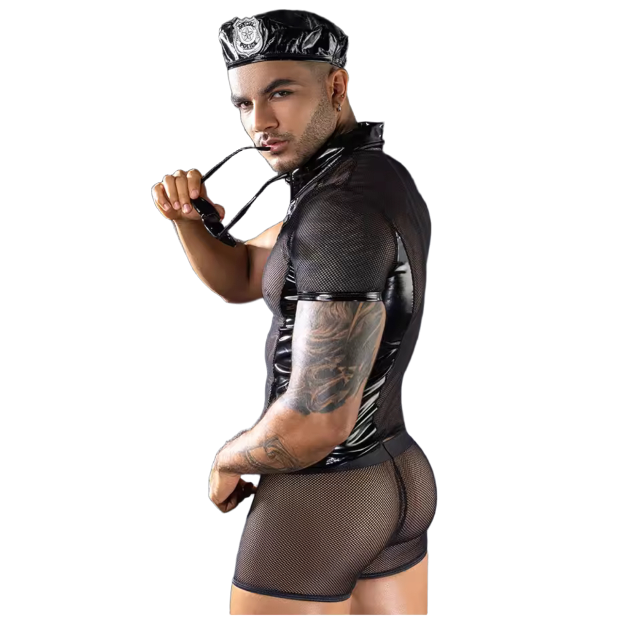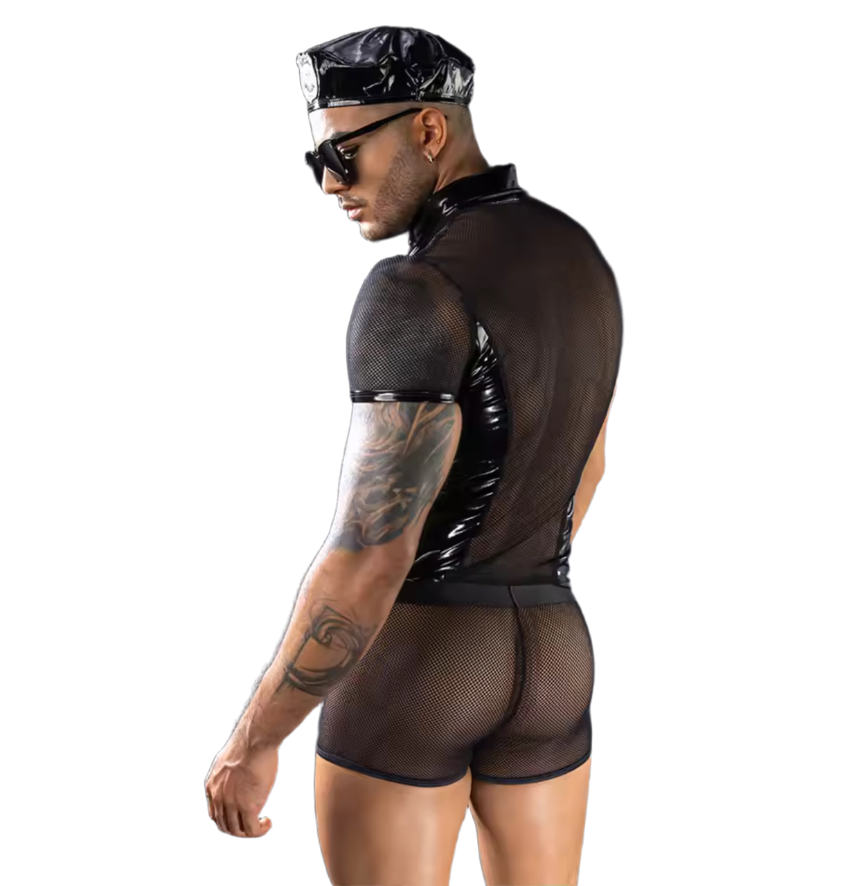 Miesten Musta  Seksi body, hattu ja aurinkolasit.