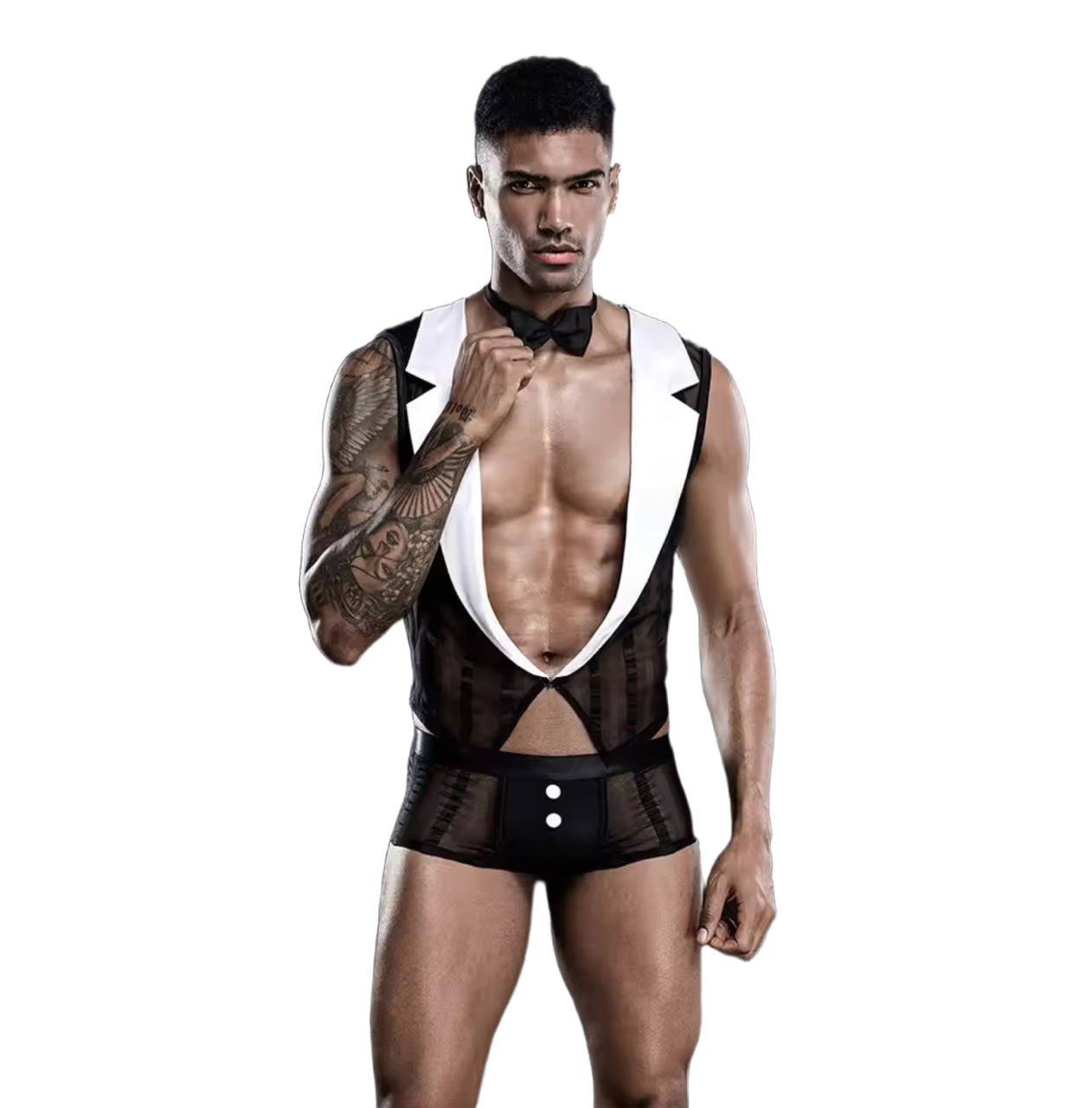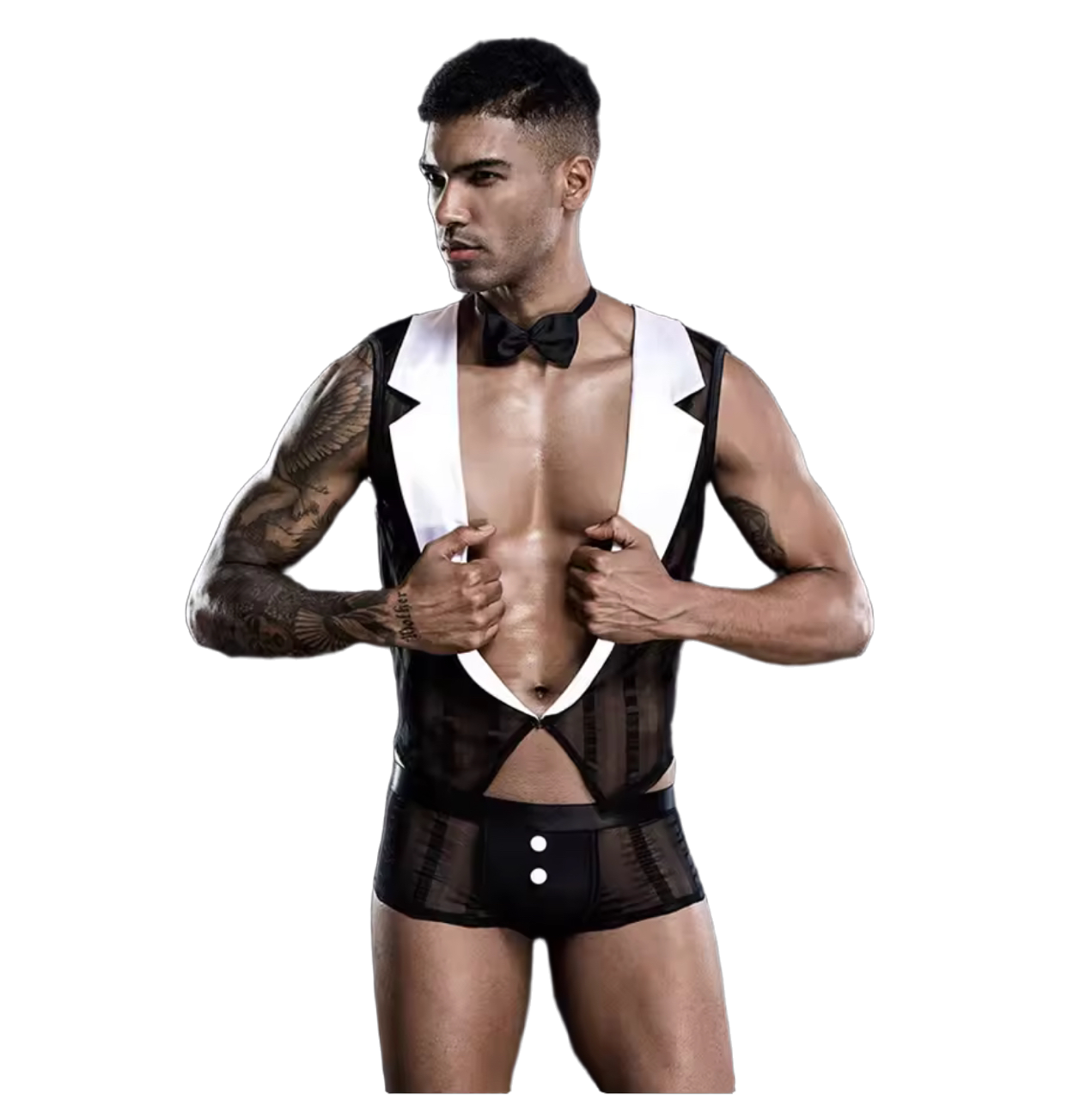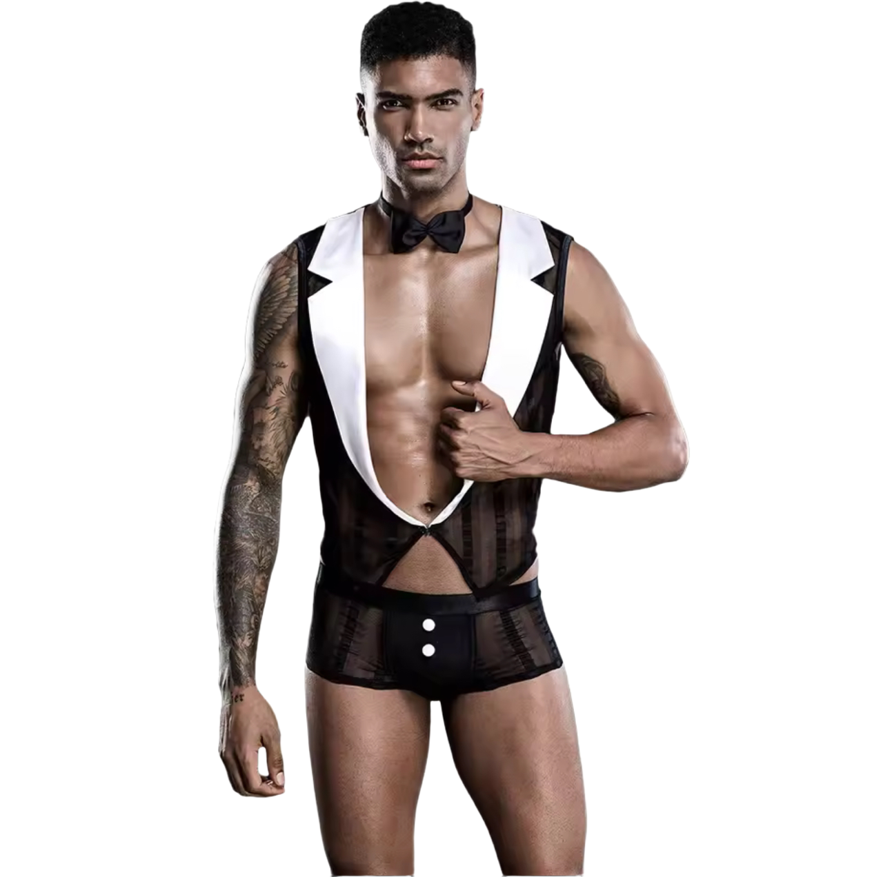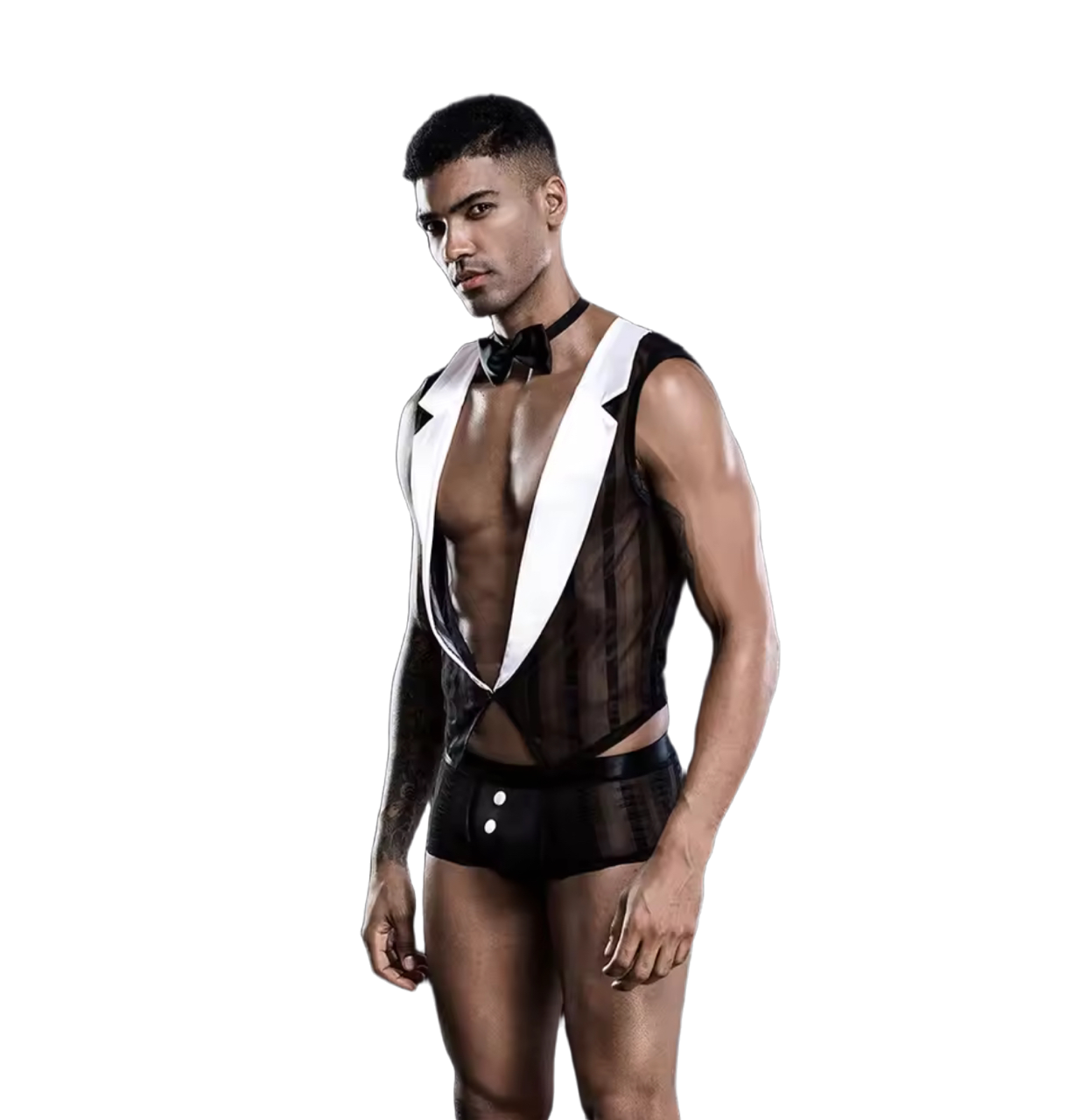 Miesten Musta Seksi Setti liivi ja bokserit.