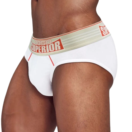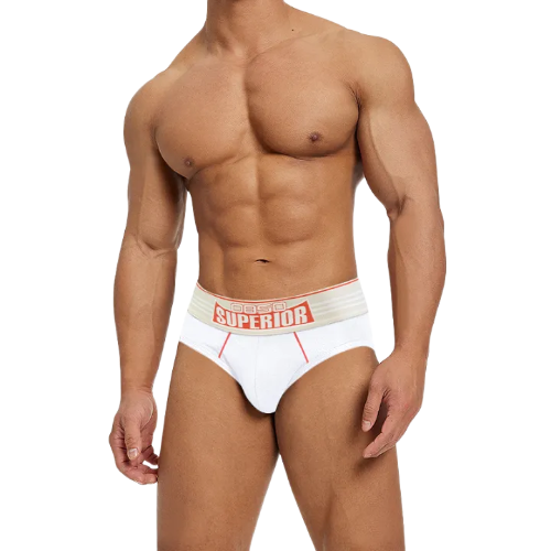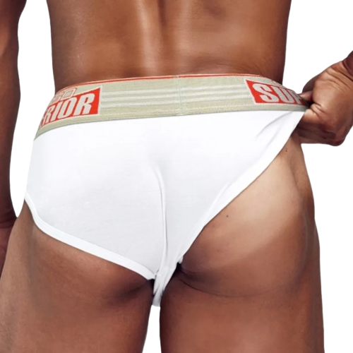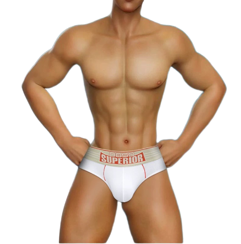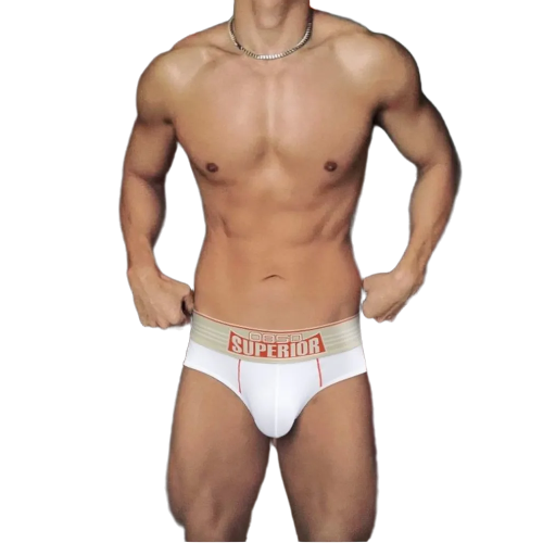 Tyylikkäät valkoiset brief-alushousut ylellisellä viimeistelyllä.