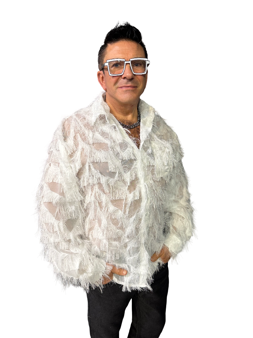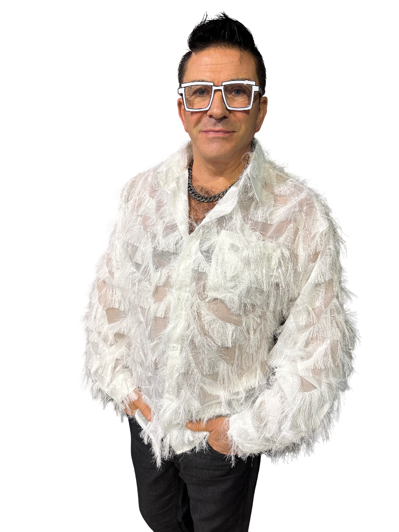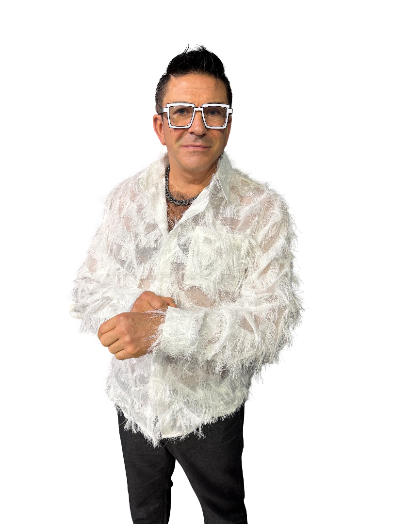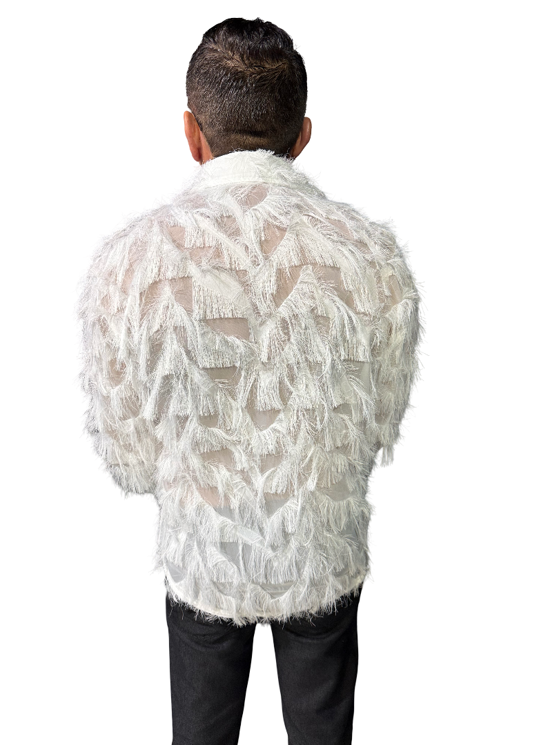 Miesten Valkoinen hapsu pitkähihainen napitettava kauluspaita.