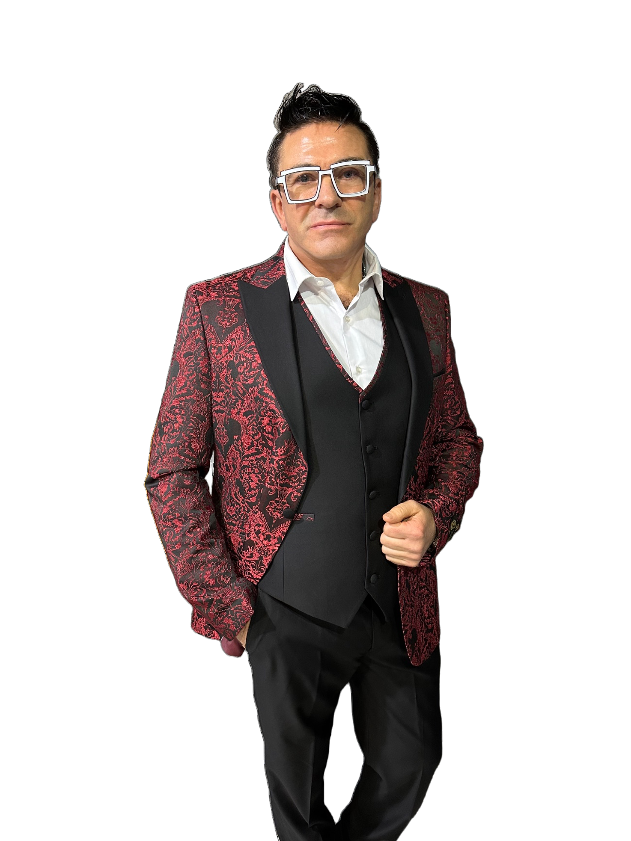 Red suits for man.