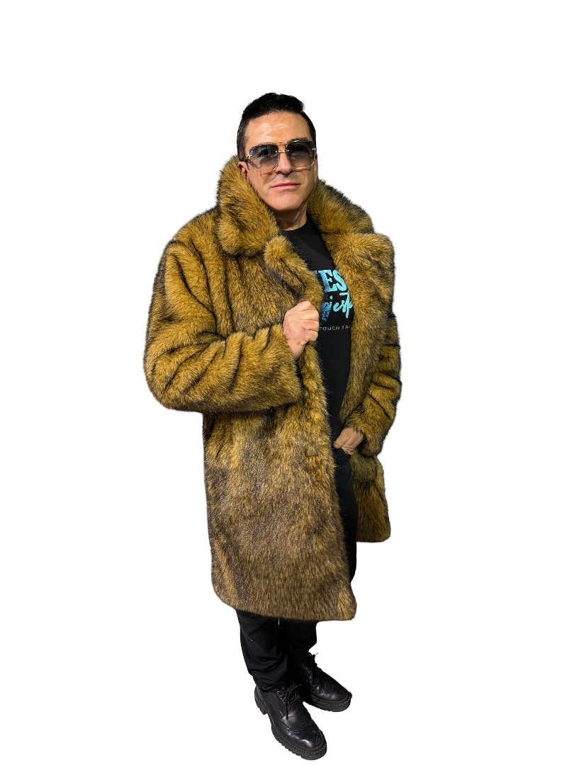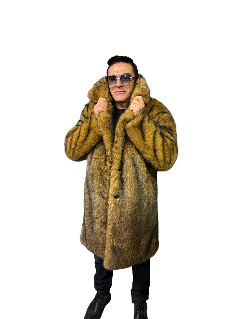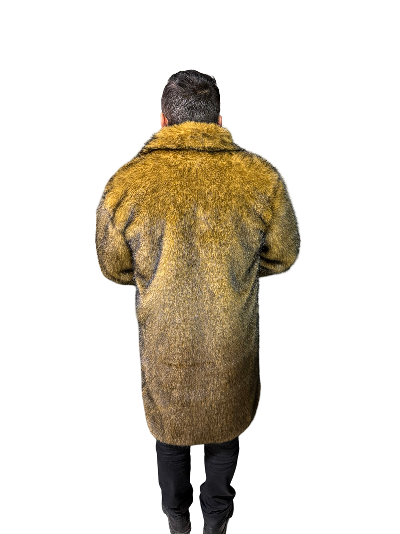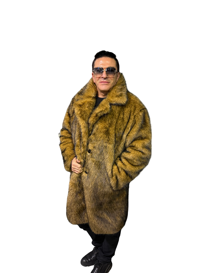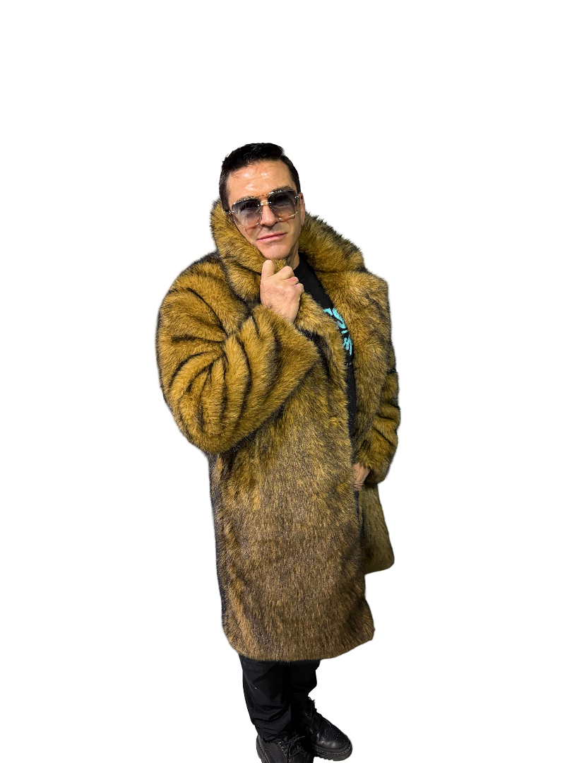 Paksu ja lämmin keinotekoinen ruskea turkki.