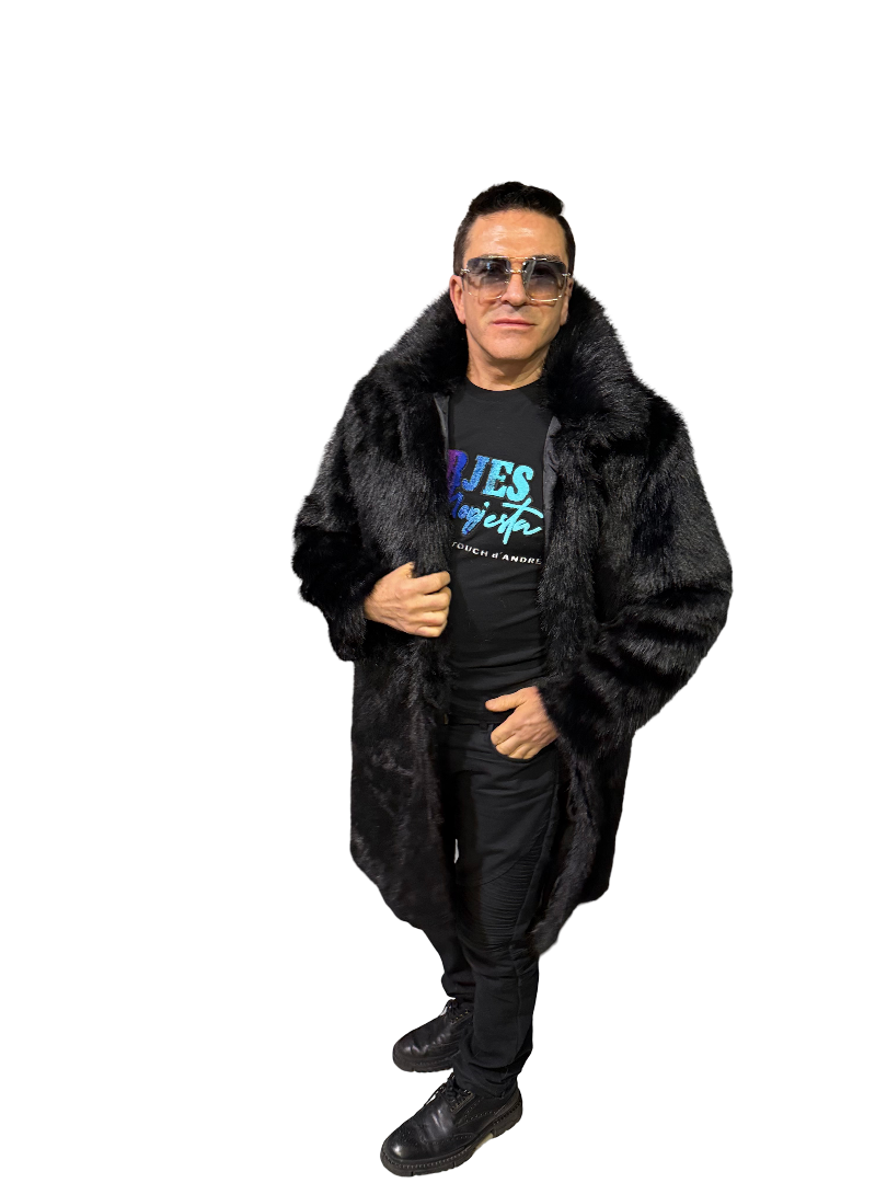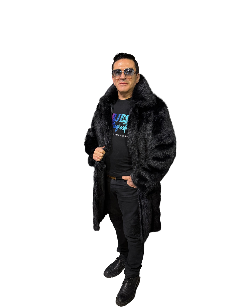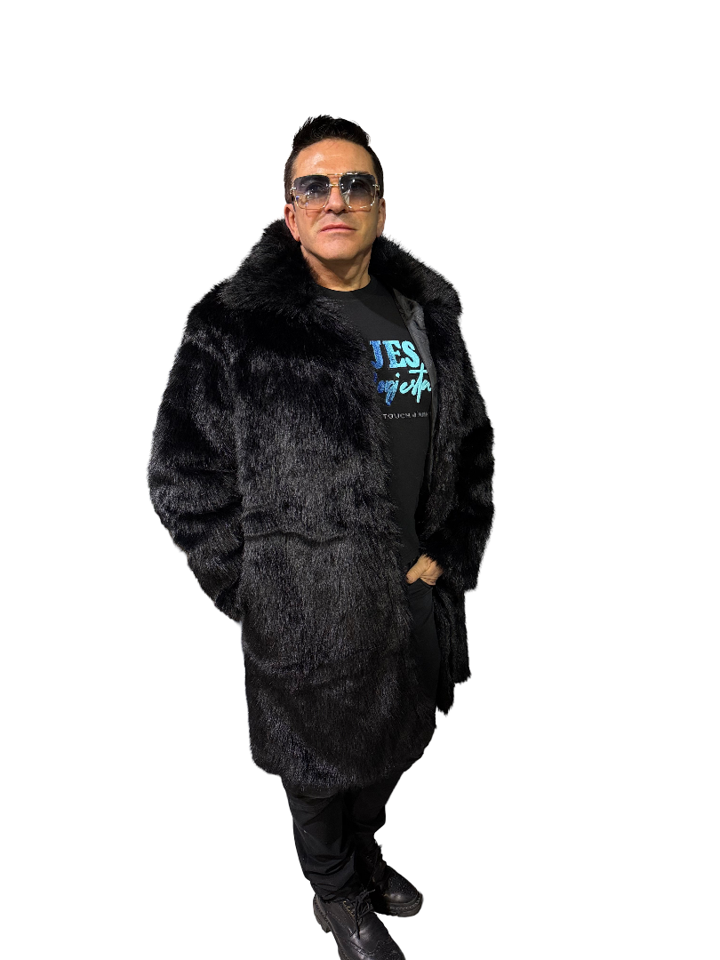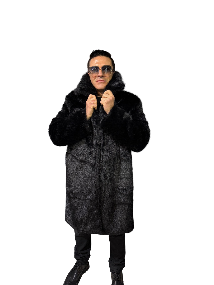 Paksu ja lämmin keinotekoinen Musta turkki.